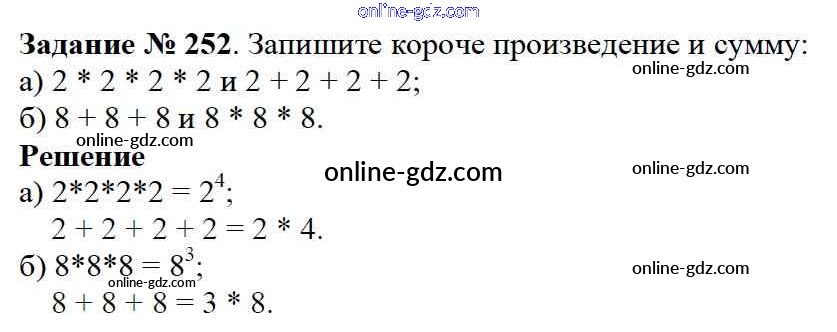 Готовые домашние задания по Математике за 5 класс Учебник Дорофеев, Шарыгин 2015 - 3.4. Степень числа Глава 3. Действия с натуральными числами 252
