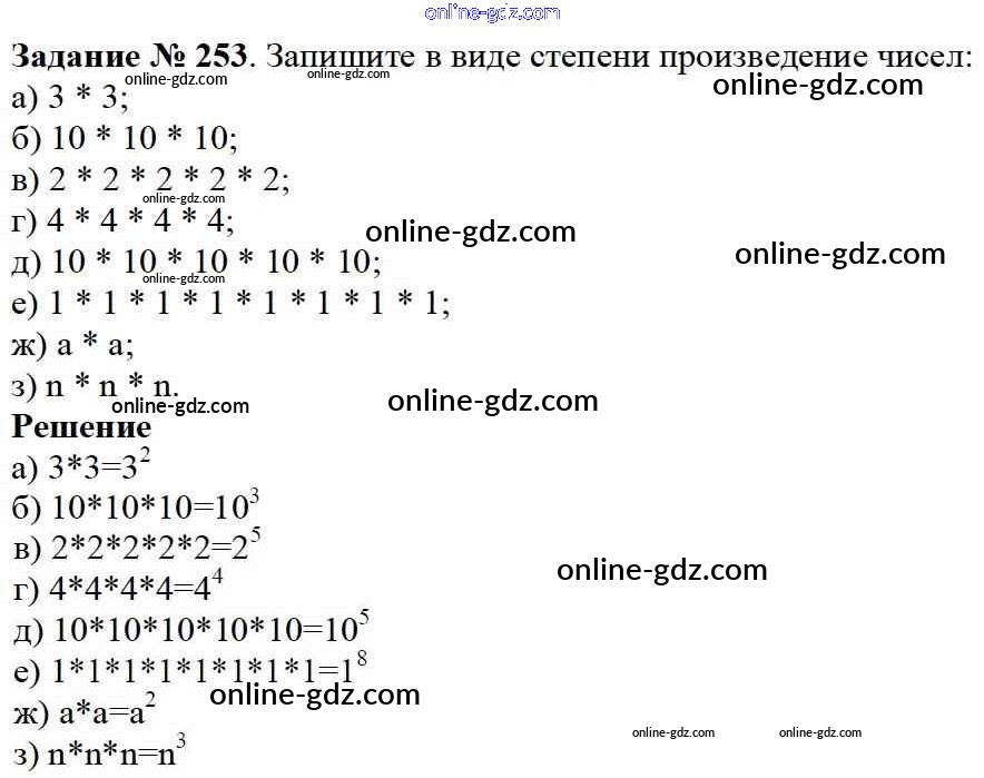 Готовые домашние задания по Математике за 5 класс Учебник Дорофеев, Шарыгин 2015 - 3.4. Степень числа Глава 3. Действия с натуральными числами 253
