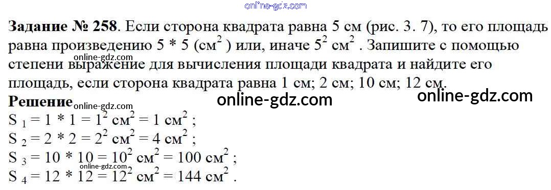 Готовые домашние задания по Математике за 5 класс Учебник Дорофеев, Шарыгин 2015 - 3.4. Степень числа Глава 3. Действия с натуральными числами 258