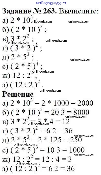 Готовые домашние задания по Математике за 5 класс Учебник Дорофеев, Шарыгин 2015 - 3.4. Степень числа Глава 3. Действия с натуральными числами 263
