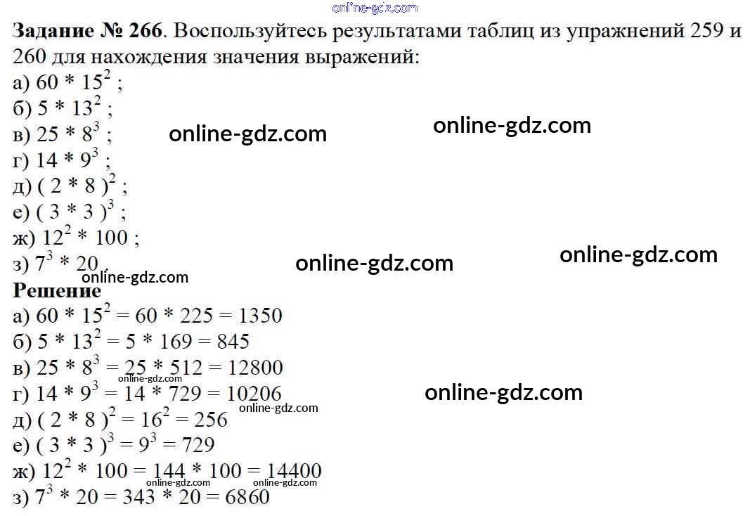 Готовые домашние задания по Математике за 5 класс Учебник Дорофеев, Шарыгин 2015 - 3.4. Степень числа Глава 3. Действия с натуральными числами 266