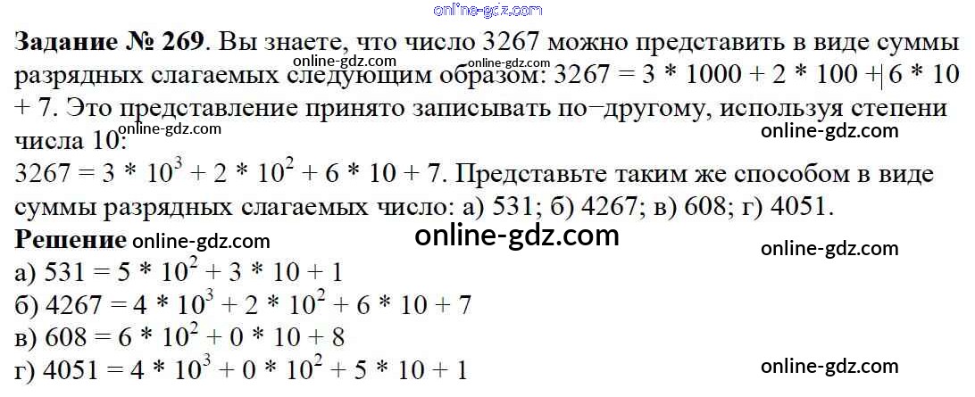 Готовые домашние задания по Математике за 5 класс Учебник Дорофеев, Шарыгин 2015 - 3.4. Степень числа Глава 3. Действия с натуральными числами 269
