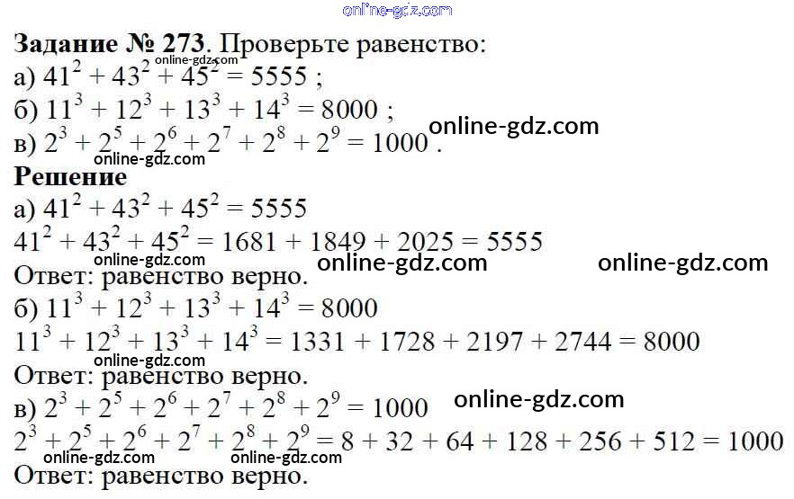 Готовые домашние задания по Математике за 5 класс Учебник Дорофеев, Шарыгин 2015 - 3.4. Степень числа Глава 3. Действия с натуральными числами 273