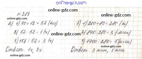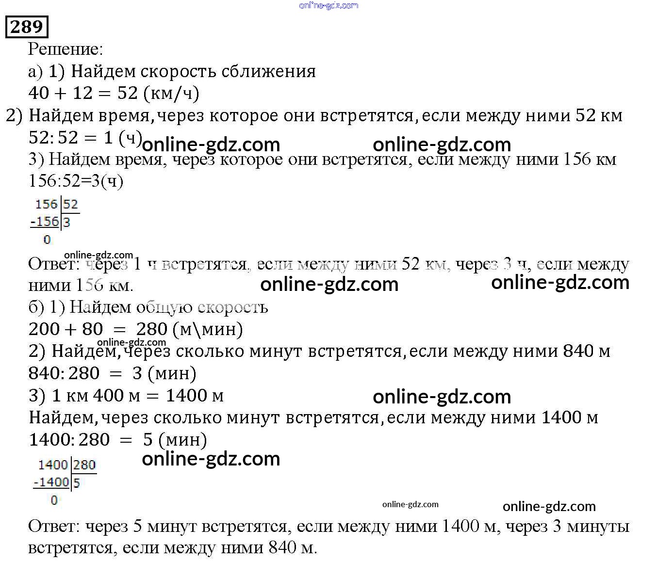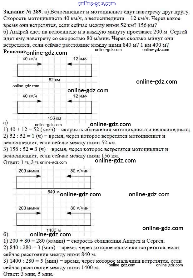 Готовые домашние задания по Математике за 5 класс Учебник Дорофеев, Шарыгин 2015 - 3.5. Задачи на движение Глава 3. Действия с натуральными числами 289