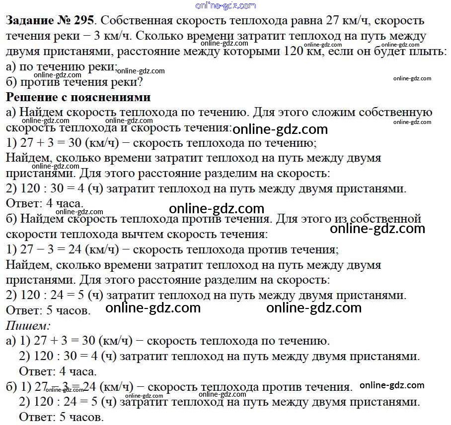Готовые домашние задания по Математике за 5 класс Учебник Дорофеев, Шарыгин 2015 - 3.5. Задачи на движение Глава 3. Действия с натуральными числами 295