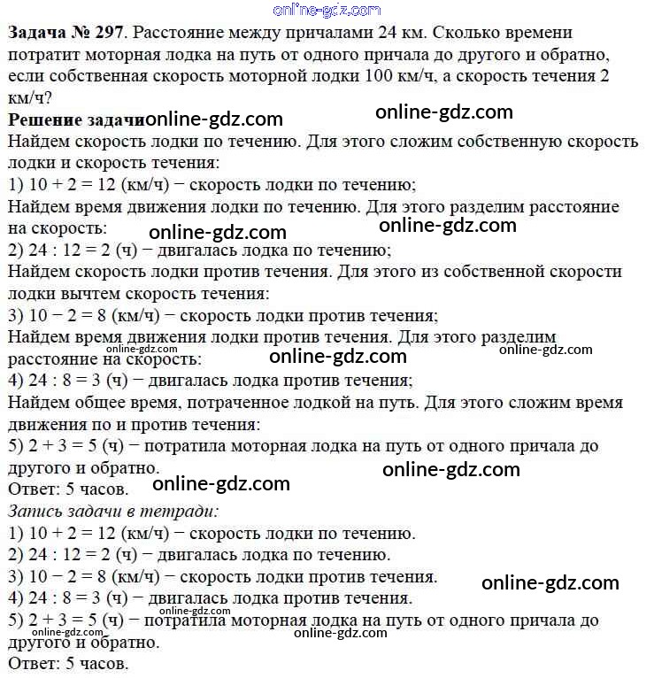 Готовые домашние задания по Математике за 5 класс Учебник Дорофеев, Шарыгин 2015 - 3.5. Задачи на движение Глава 3. Действия с натуральными числами 297