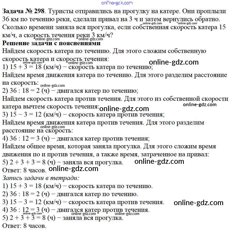 Готовые домашние задания по Математике за 5 класс Учебник Дорофеев, Шарыгин 2015 - 3.5. Задачи на движение Глава 3. Действия с натуральными числами 298