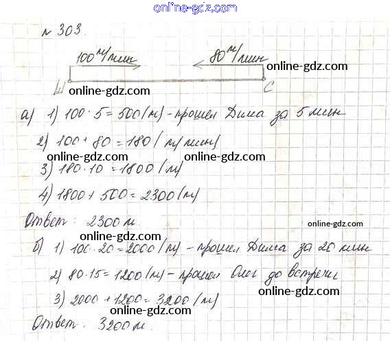 Готовые домашние задания по Математике за 5 класс Учебник Дорофеев, Шарыгин 2015 - 3.5. Задачи на движение Глава 3. Действия с натуральными числами 303