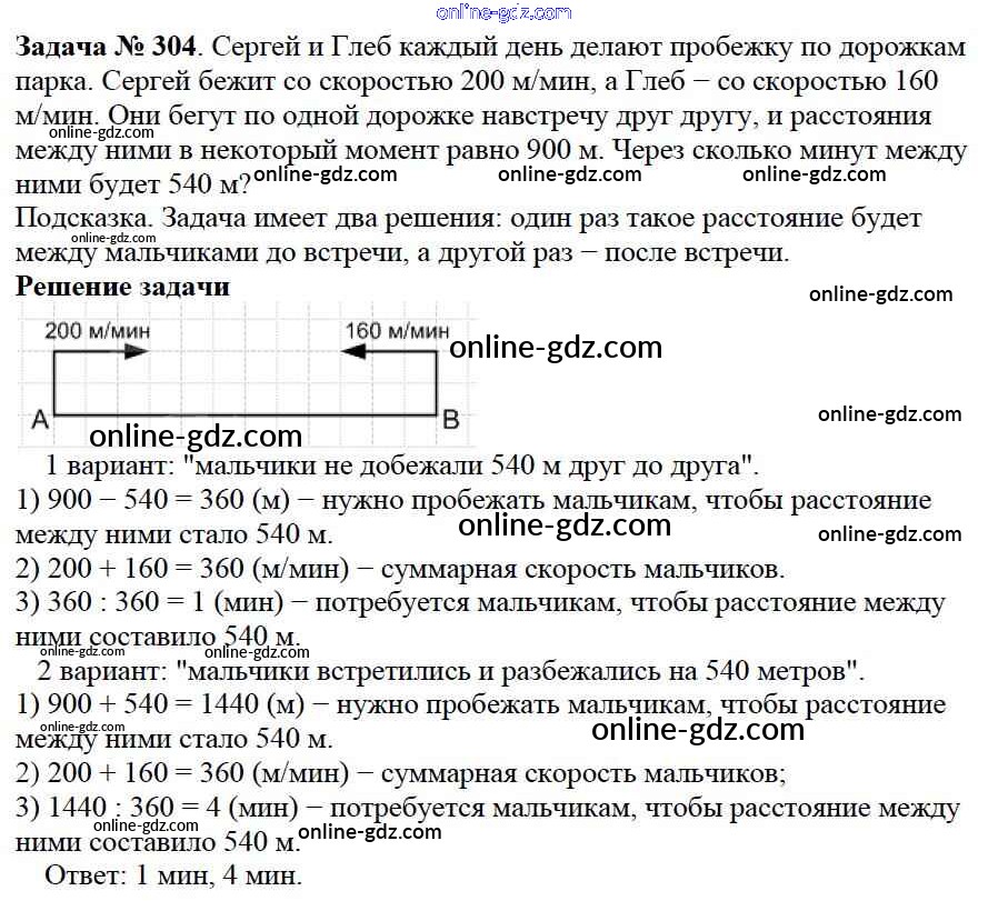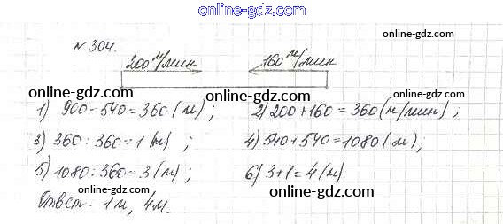 Готовые домашние задания по Математике за 5 класс Учебник Дорофеев, Шарыгин 2015 - 3.5. Задачи на движение Глава 3. Действия с натуральными числами 304