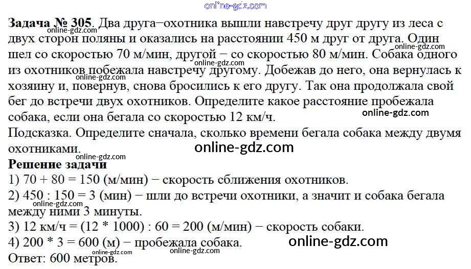 Готовые домашние задания по Математике за 5 класс Учебник Дорофеев, Шарыгин 2015 - 3.5. Задачи на движение Глава 3. Действия с натуральными числами 305