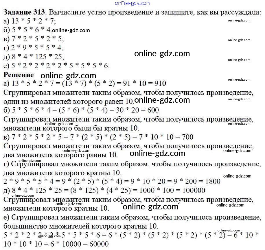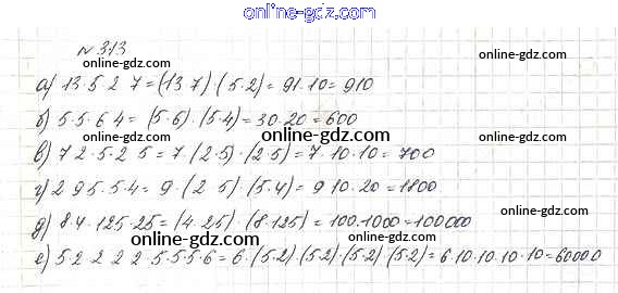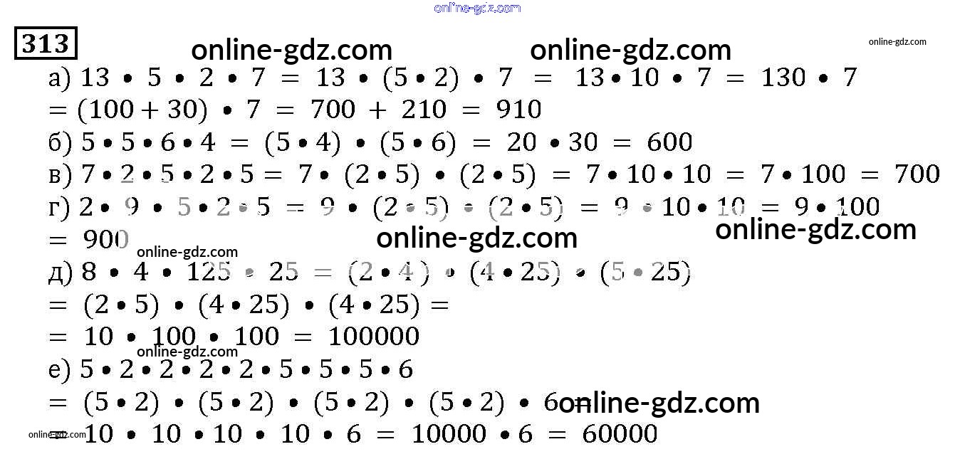 Готовые домашние задания по Математике за 5 класс Учебник Дорофеев, Шарыгин 2015 - 4.1. Свойства сложения и умножения Глава 4. Использование свойств действий при вычислениях 313