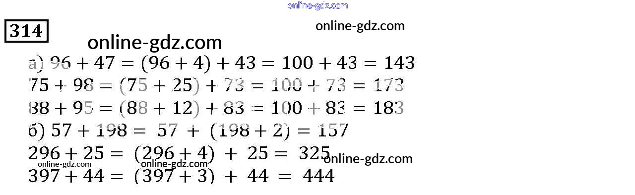 Готовые домашние задания по Математике за 5 класс Учебник Дорофеев, Шарыгин 2015 - 4.1. Свойства сложения и умножения Глава 4. Использование свойств действий при вычислениях 314