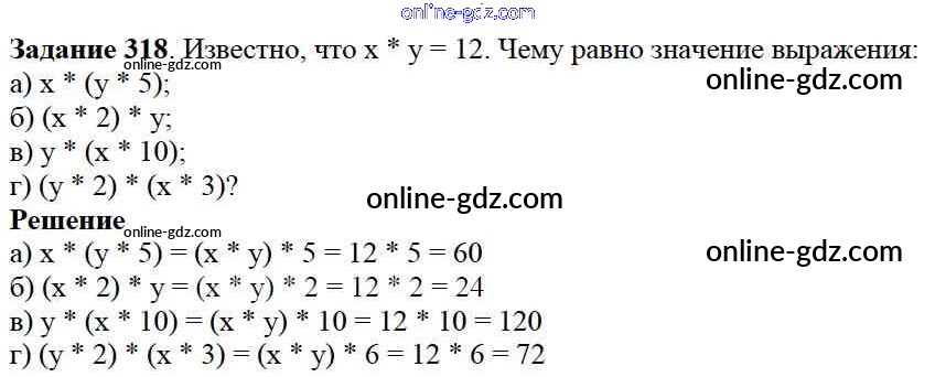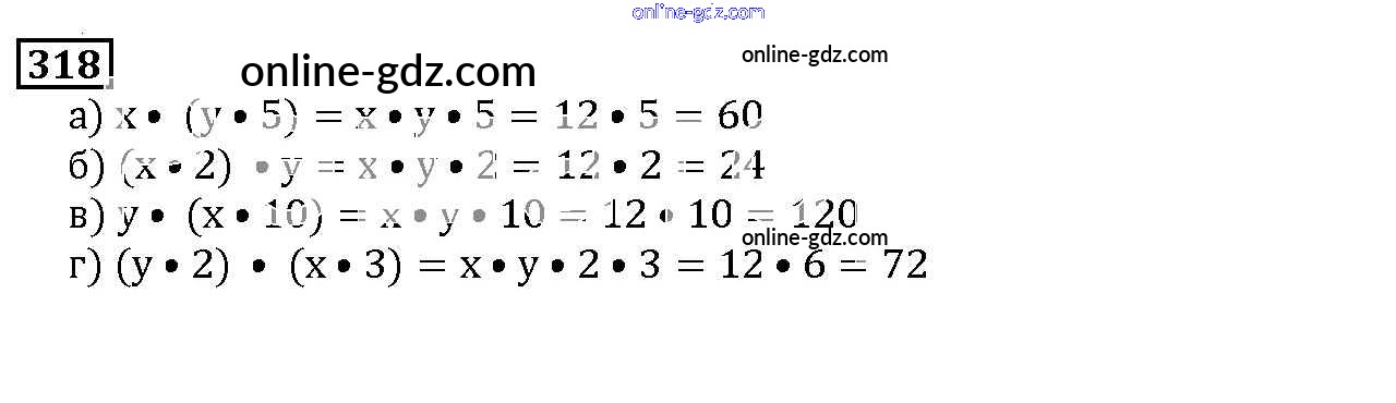 Готовые домашние задания по Математике за 5 класс Учебник Дорофеев, Шарыгин 2015 - 4.1. Свойства сложения и умножения Глава 4. Использование свойств действий при вычислениях 318