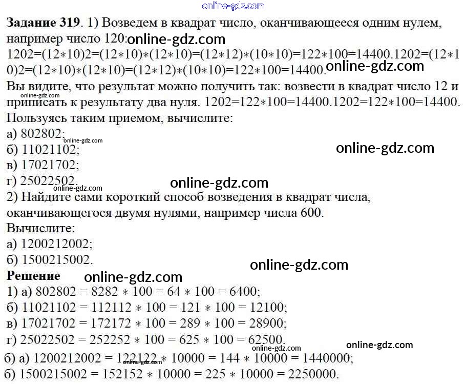 Готовые домашние задания по Математике за 5 класс Учебник Дорофеев, Шарыгин 2015 - 4.1. Свойства сложения и умножения Глава 4. Использование свойств действий при вычислениях 319