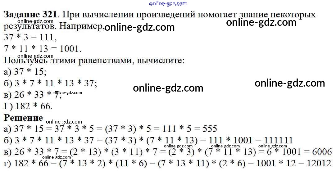 Готовые домашние задания по Математике за 5 класс Учебник Дорофеев, Шарыгин 2015 - 4.1. Свойства сложения и умножения Глава 4. Использование свойств действий при вычислениях 321