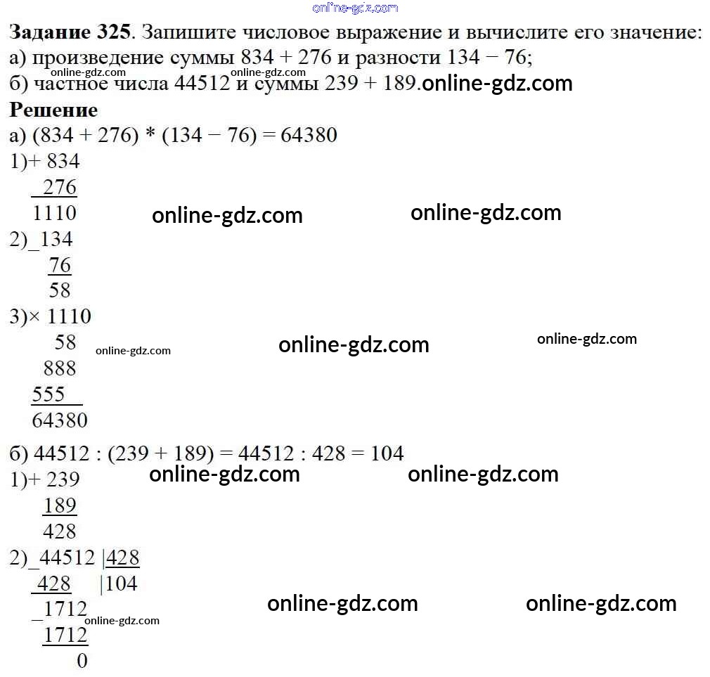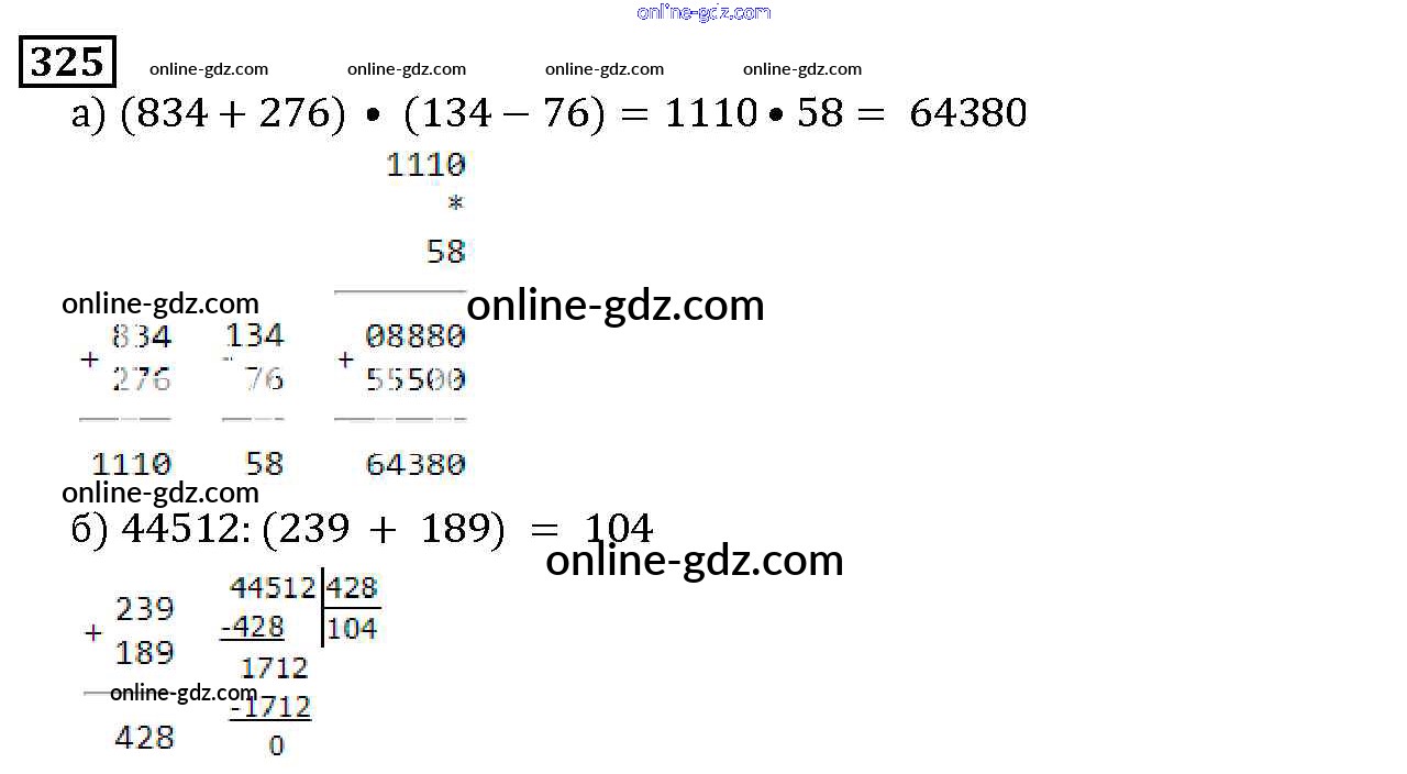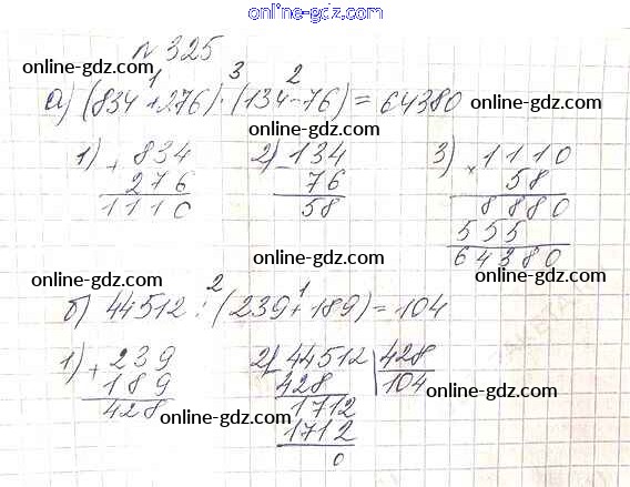 Готовые домашние задания по Математике за 5 класс Учебник Дорофеев, Шарыгин 2015 - 4.1. Свойства сложения и умножения Глава 4. Использование свойств действий при вычислениях 325