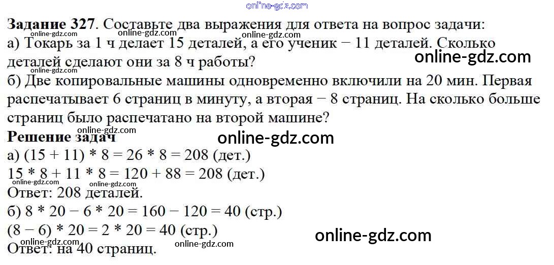 Готовые домашние задания по Математике за 5 класс Учебник Дорофеев, Шарыгин 2015 - 4.2. Распределительное свойство Глава 4. Использование свойств действий при вычислениях 327