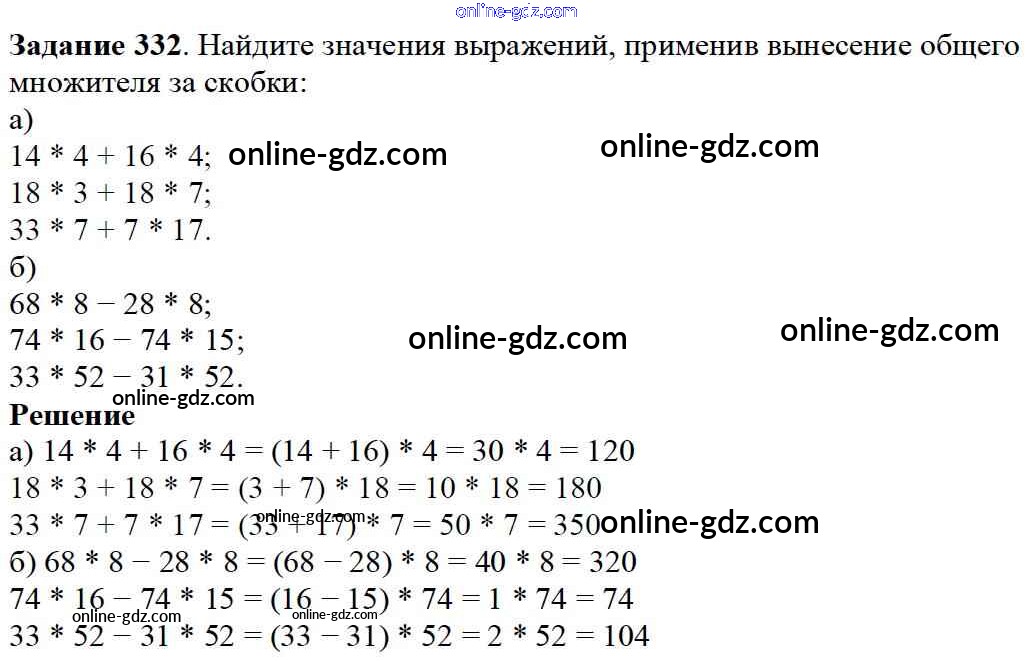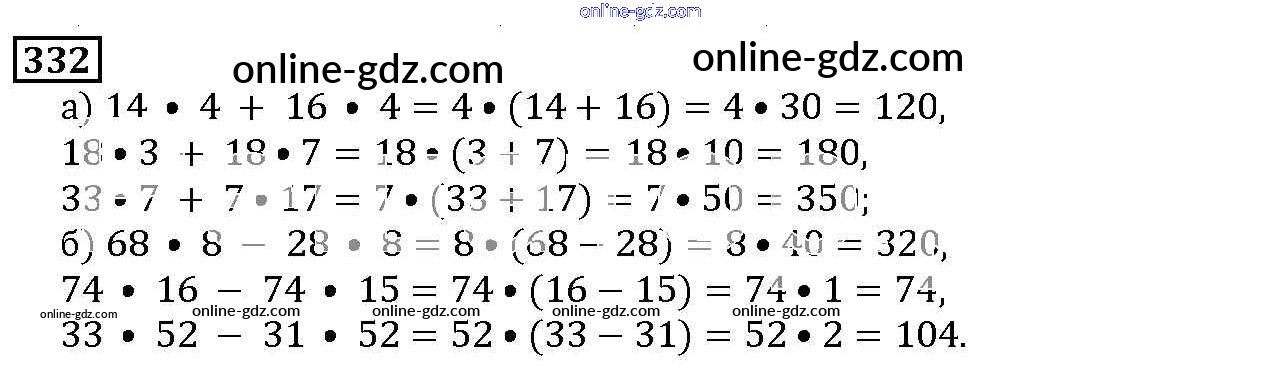 Готовые домашние задания по Математике за 5 класс Учебник Дорофеев, Шарыгин 2015 - 4.2. Распределительное свойство Глава 4. Использование свойств действий при вычислениях 332
