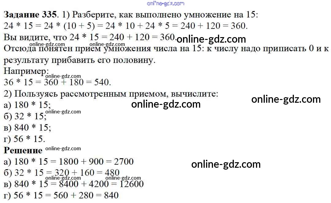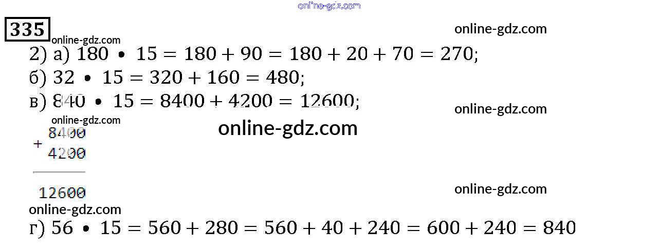 Готовые домашние задания по Математике за 5 класс Учебник Дорофеев, Шарыгин 2015 - 4.2. Распределительное свойство Глава 4. Использование свойств действий при вычислениях 335