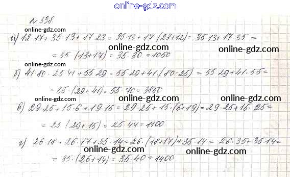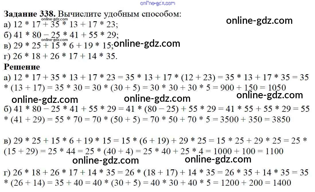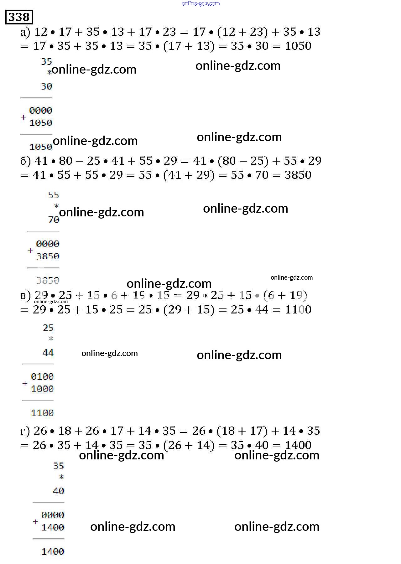 Готовые домашние задания по Математике за 5 класс Учебник Дорофеев, Шарыгин 2015 - 4.2. Распределительное свойство Глава 4. Использование свойств действий при вычислениях 338