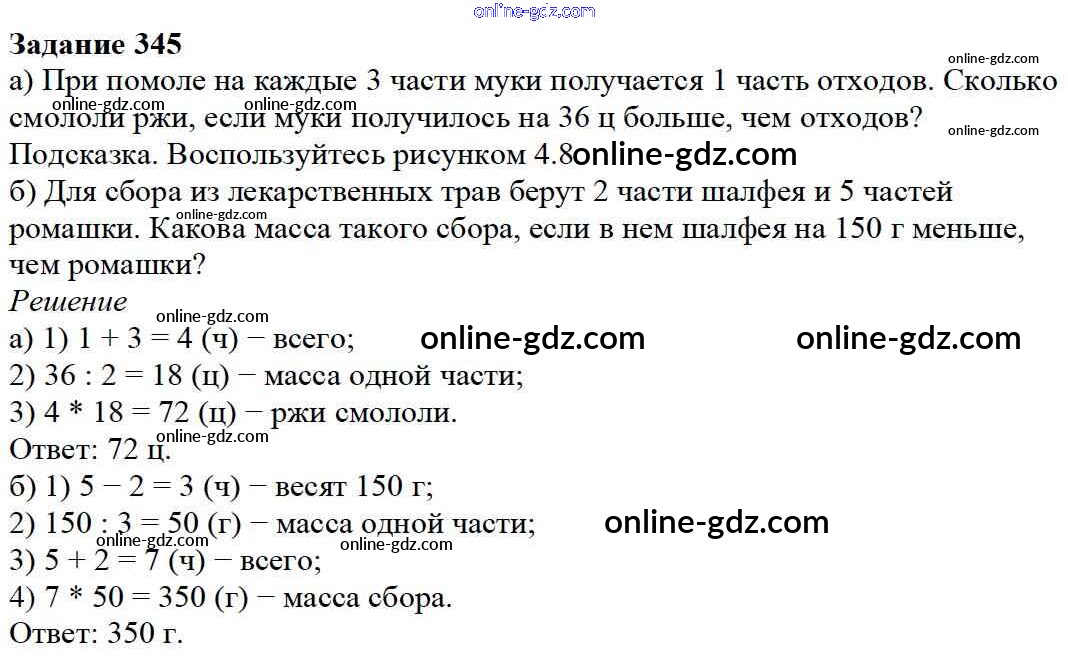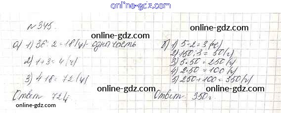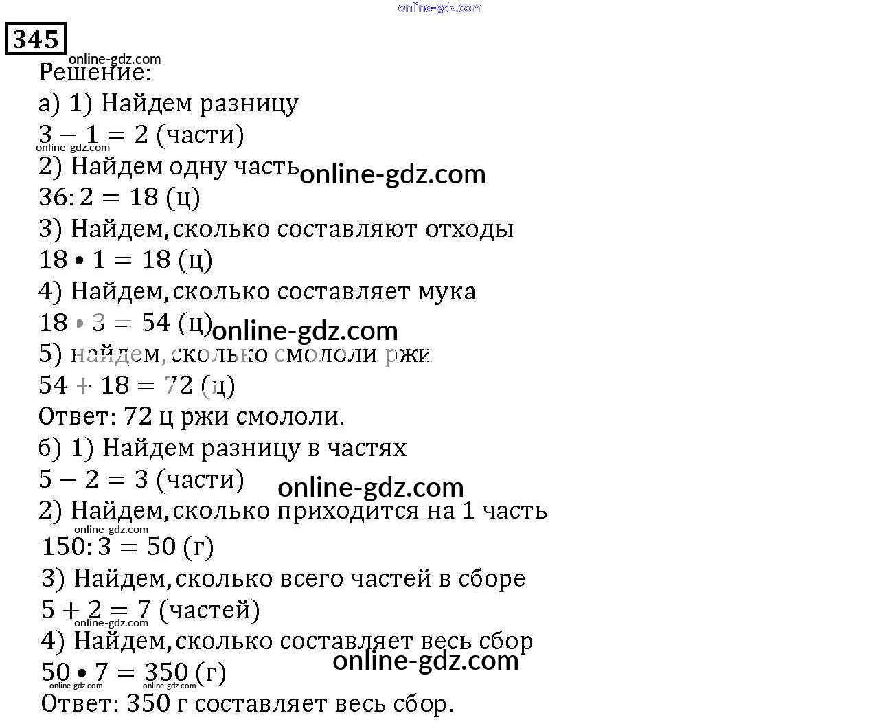 Готовые домашние задания по Математике за 5 класс Учебник Дорофеев, Шарыгин 2015 - 4.3. Задачи на части Глава 4. Использование свойств действий при вычислениях 345