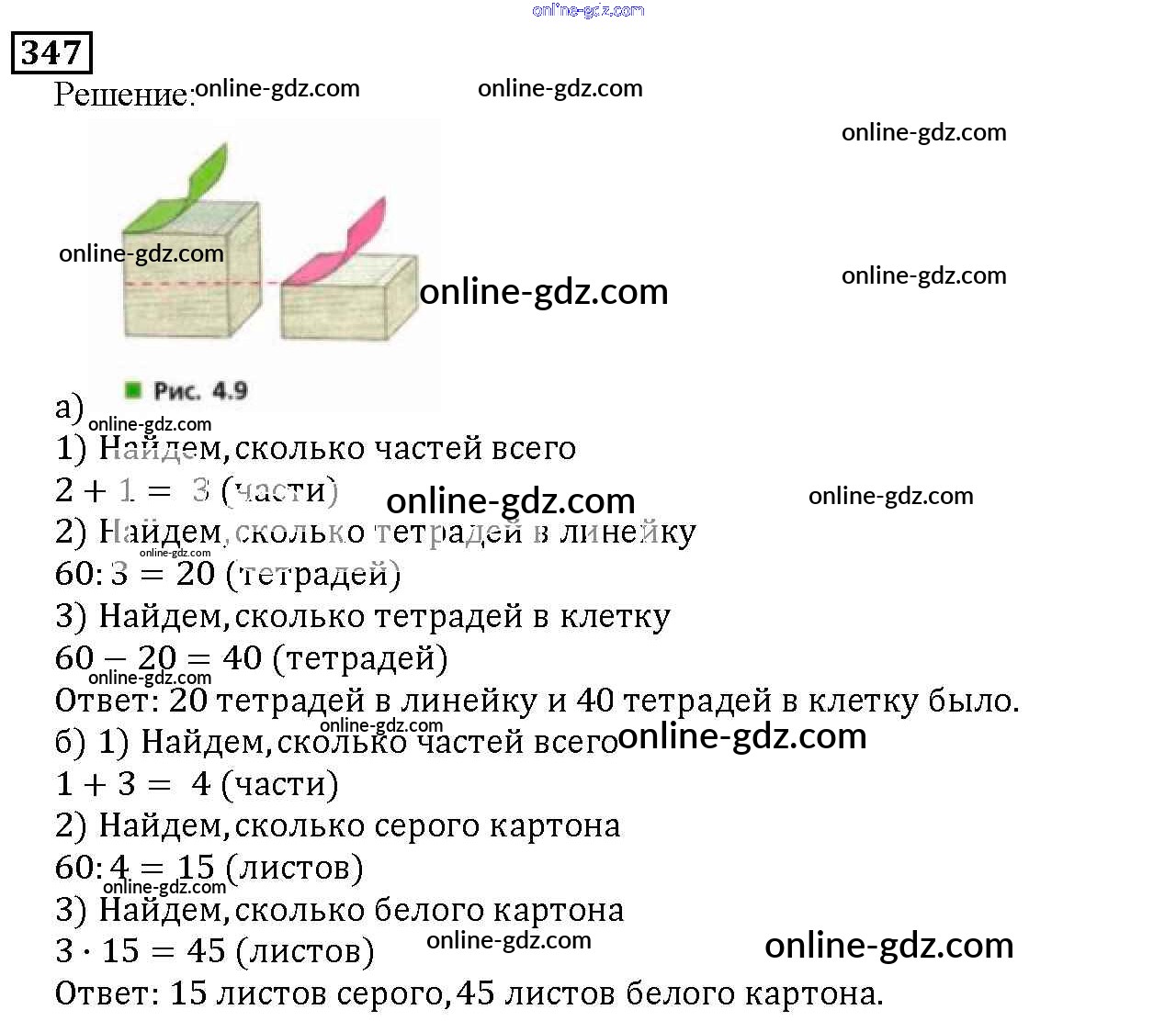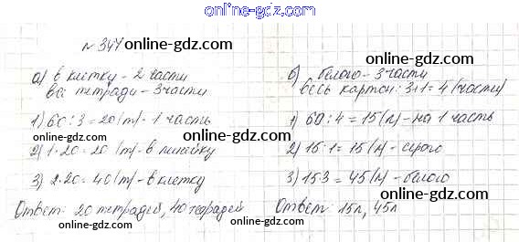 Готовые домашние задания по Математике за 5 класс Учебник Дорофеев, Шарыгин 2015 - 4.3. Задачи на части Глава 4. Использование свойств действий при вычислениях 347