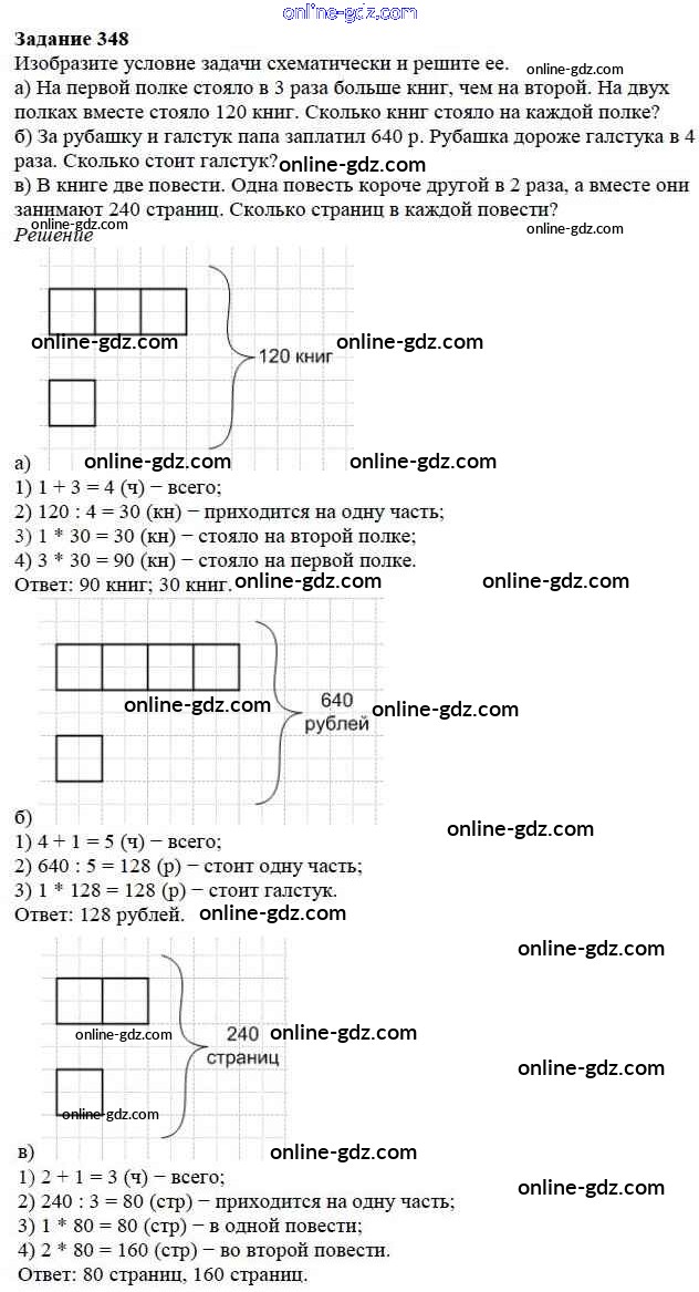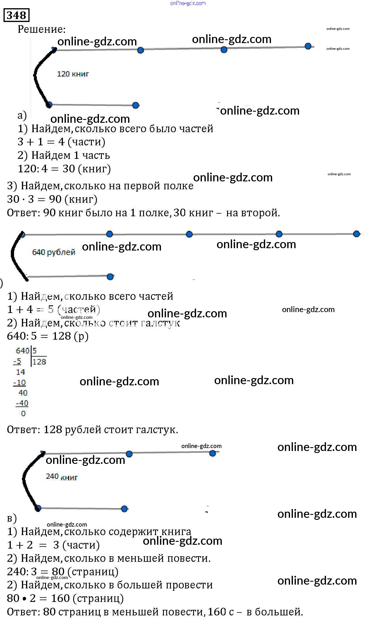 Готовые домашние задания по Математике за 5 класс Учебник Дорофеев, Шарыгин 2015 - 4.3. Задачи на части Глава 4. Использование свойств действий при вычислениях 348