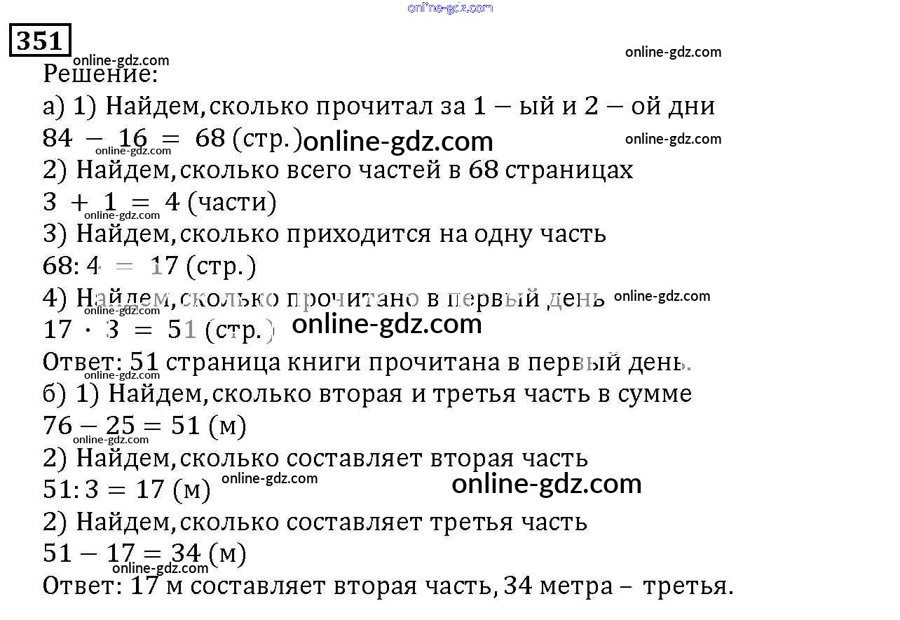 Готовые домашние задания по Математике за 5 класс Учебник Дорофеев, Шарыгин 2015 - 4.3. Задачи на части Глава 4. Использование свойств действий при вычислениях 351