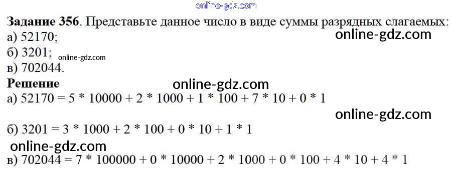 Готовые домашние задания по Математике за 5 класс Учебник Дорофеев, Шарыгин 2015 - 4.3. Задачи на части Глава 4. Использование свойств действий при вычислениях 356