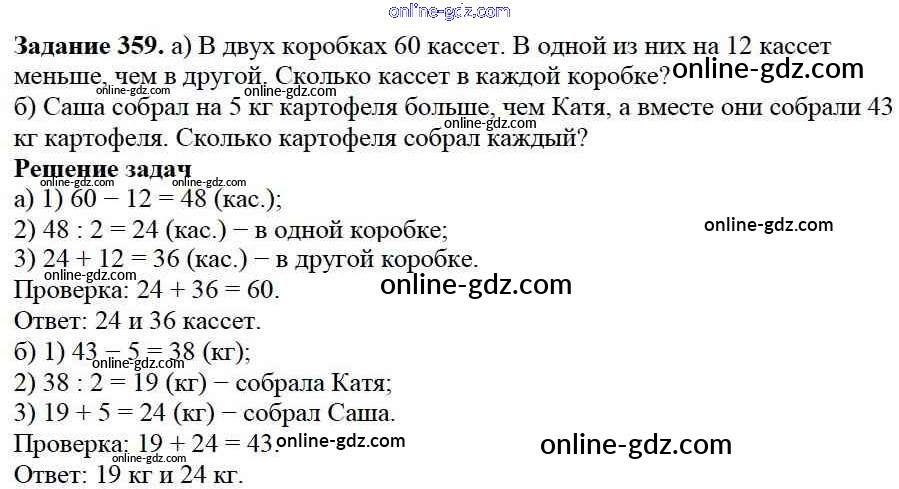 Готовые домашние задания по Математике за 5 класс Учебник Дорофеев, Шарыгин 2015 - 4.4. Задачи на уравнивание Глава 4. Использование свойств действий при вычислениях 359