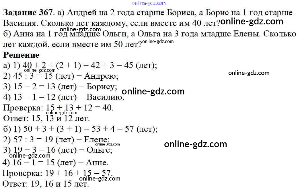 Готовые домашние задания по Математике за 5 класс Учебник Дорофеев, Шарыгин 2015 - 4.4. Задачи на уравнивание Глава 4. Использование свойств действий при вычислениях 367