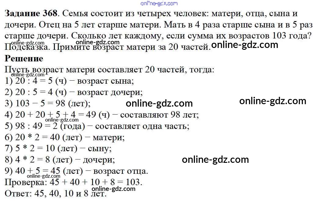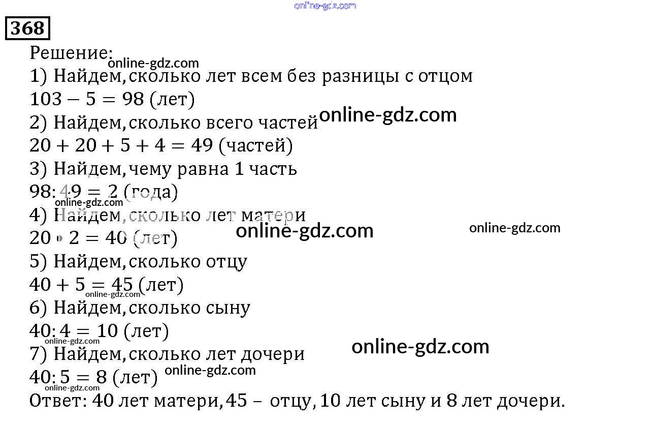 Готовые домашние задания по Математике за 5 класс Учебник Дорофеев, Шарыгин 2015 - 4.4. Задачи на уравнивание Глава 4. Использование свойств действий при вычислениях 368