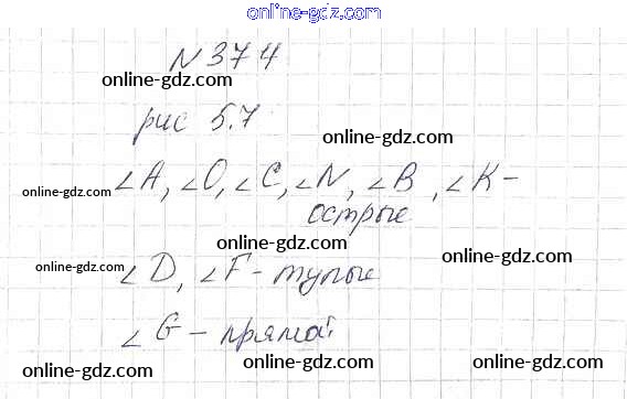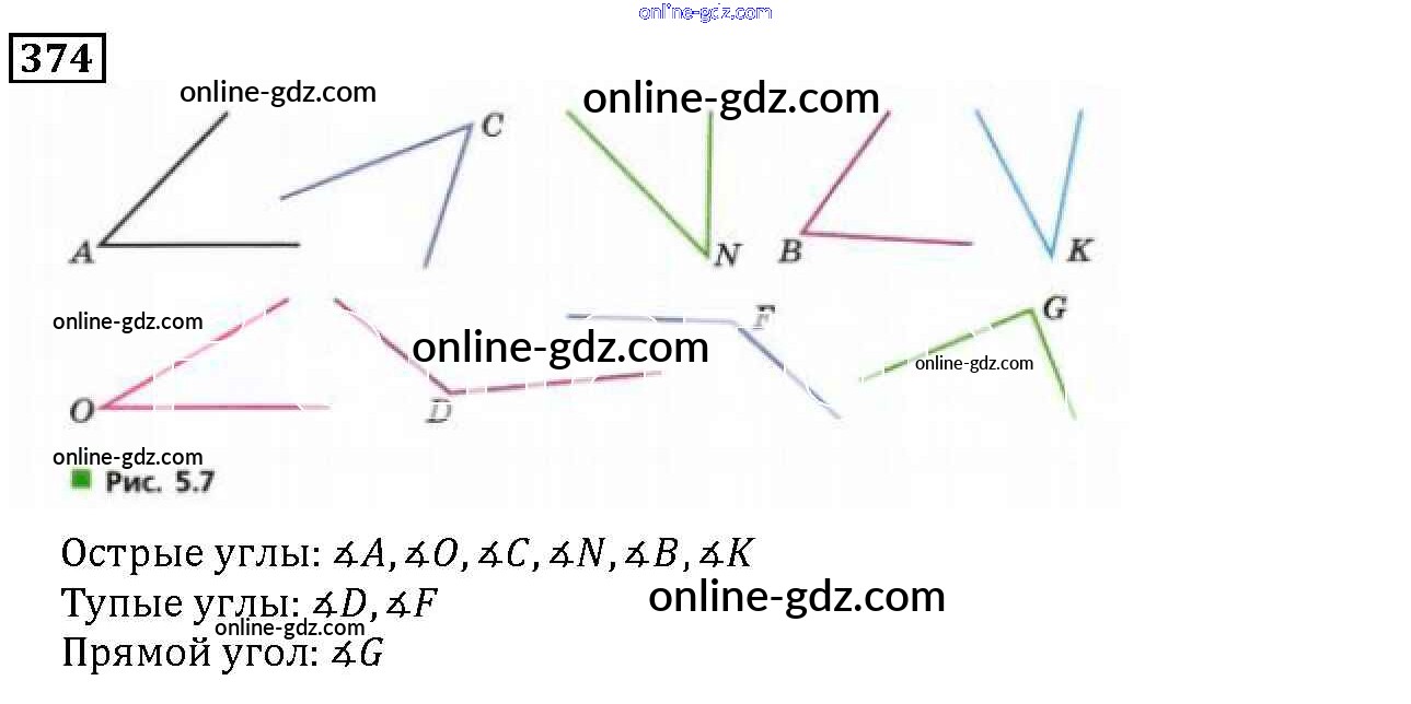 Готовые домашние задания по Математике за 5 класс Учебник Дорофеев, Шарыгин 2015 - 5.1. Как обозначают и сравнивают углы Глава 5. Углы и многоугольники 374