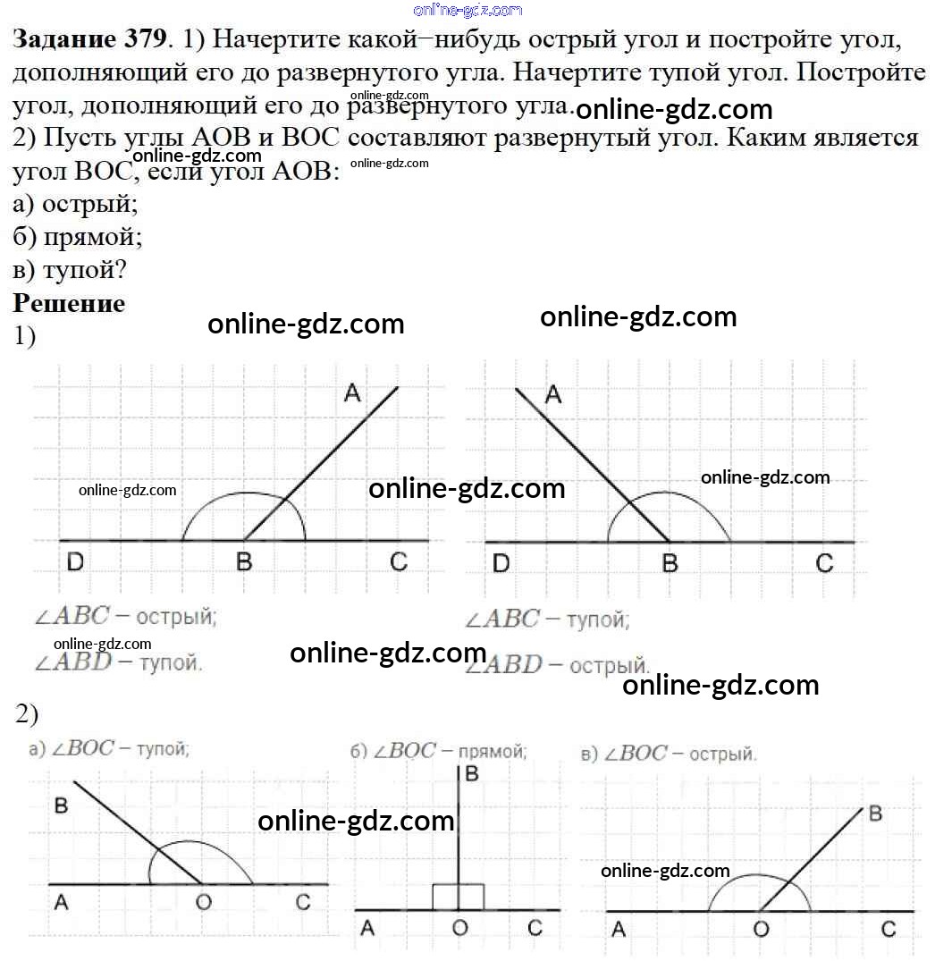 Готовые домашние задания по Математике за 5 класс Учебник Дорофеев, Шарыгин 2015 - 5.1. Как обозначают и сравнивают углы Глава 5. Углы и многоугольники 379