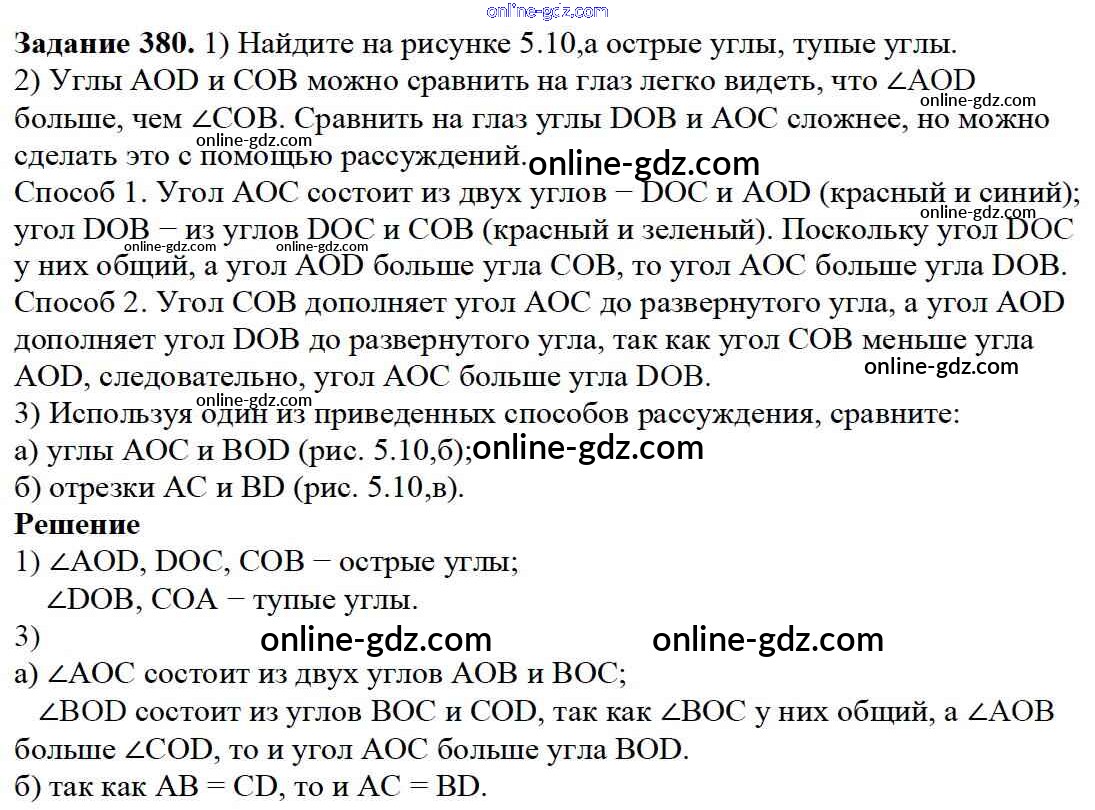 Готовые домашние задания по Математике за 5 класс Учебник Дорофеев, Шарыгин 2015 - 5.1. Как обозначают и сравнивают углы Глава 5. Углы и многоугольники 380