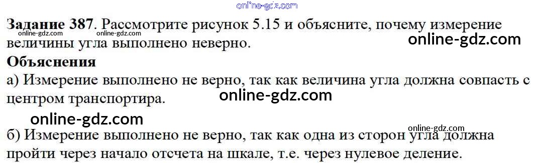 Готовые домашние задания по Математике за 5 класс Учебник Дорофеев, Шарыгин 2015 - 5.2. Измерение углов Глава 5. Углы и многоугольники 387
