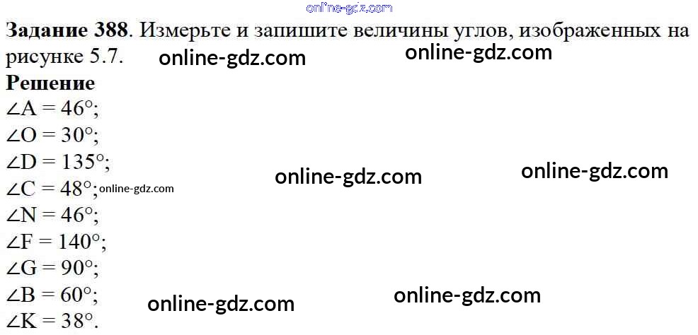 Готовые домашние задания по Математике за 5 класс Учебник Дорофеев, Шарыгин 2015 - 5.2. Измерение углов Глава 5. Углы и многоугольники 388