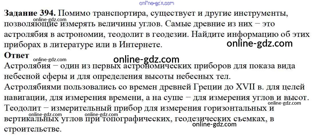 Готовые домашние задания по Математике за 5 класс Учебник Дорофеев, Шарыгин 2015 - 5.2. Измерение углов Глава 5. Углы и многоугольники 394