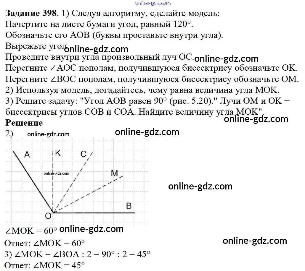 Готовые домашние задания по Математике за 5 класс Учебник Дорофеев, Шарыгин 2015 - 5.2. Измерение углов Глава 5. Углы и многоугольники 398
