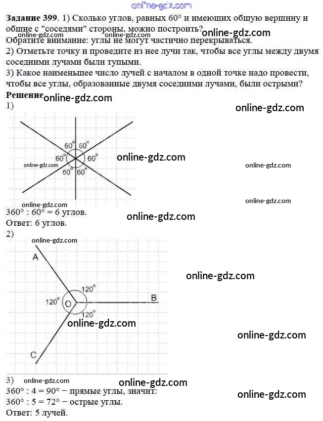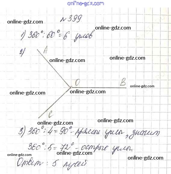 Готовые домашние задания по Математике за 5 класс Учебник Дорофеев, Шарыгин 2015 - 5.2. Измерение углов Глава 5. Углы и многоугольники 399