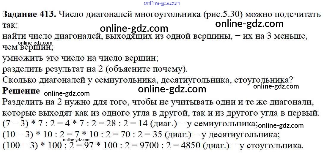 Готовые домашние задания по Математике за 5 класс Учебник Дорофеев, Шарыгин 2015 - 5.3. Ломаные и многоугольники Глава 5. Углы и многоугольники 413