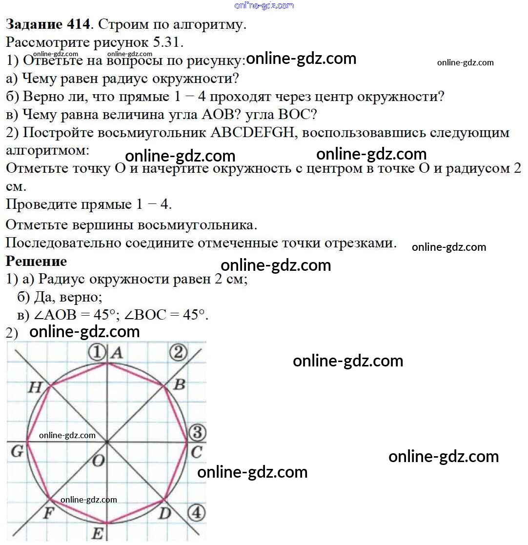 Готовые домашние задания по Математике за 5 класс Учебник Дорофеев, Шарыгин 2015 - 5.3. Ломаные и многоугольники Глава 5. Углы и многоугольники 414