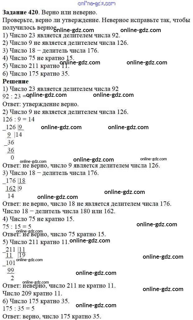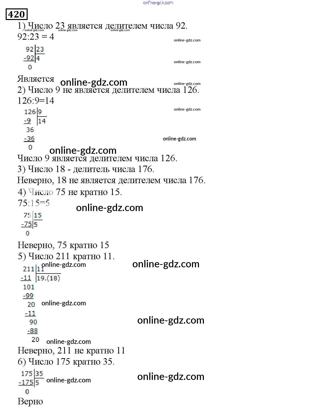 Готовые домашние задания по Математике за 5 класс Учебник Дорофеев, Шарыгин 2015 - 6.1. Делители и кратные Глава 6. Делимость чисел 420