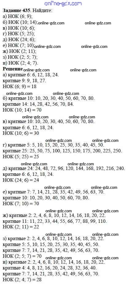 Готовые домашние задания по Математике за 5 класс Учебник Дорофеев, Шарыгин 2015 - 6.1. Делители и кратные Глава 6. Делимость чисел 435