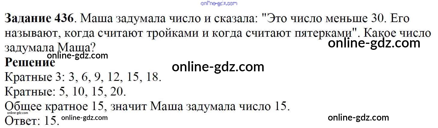 Готовые домашние задания по Математике за 5 класс Учебник Дорофеев, Шарыгин 2015 - 6.1. Делители и кратные Глава 6. Делимость чисел 436