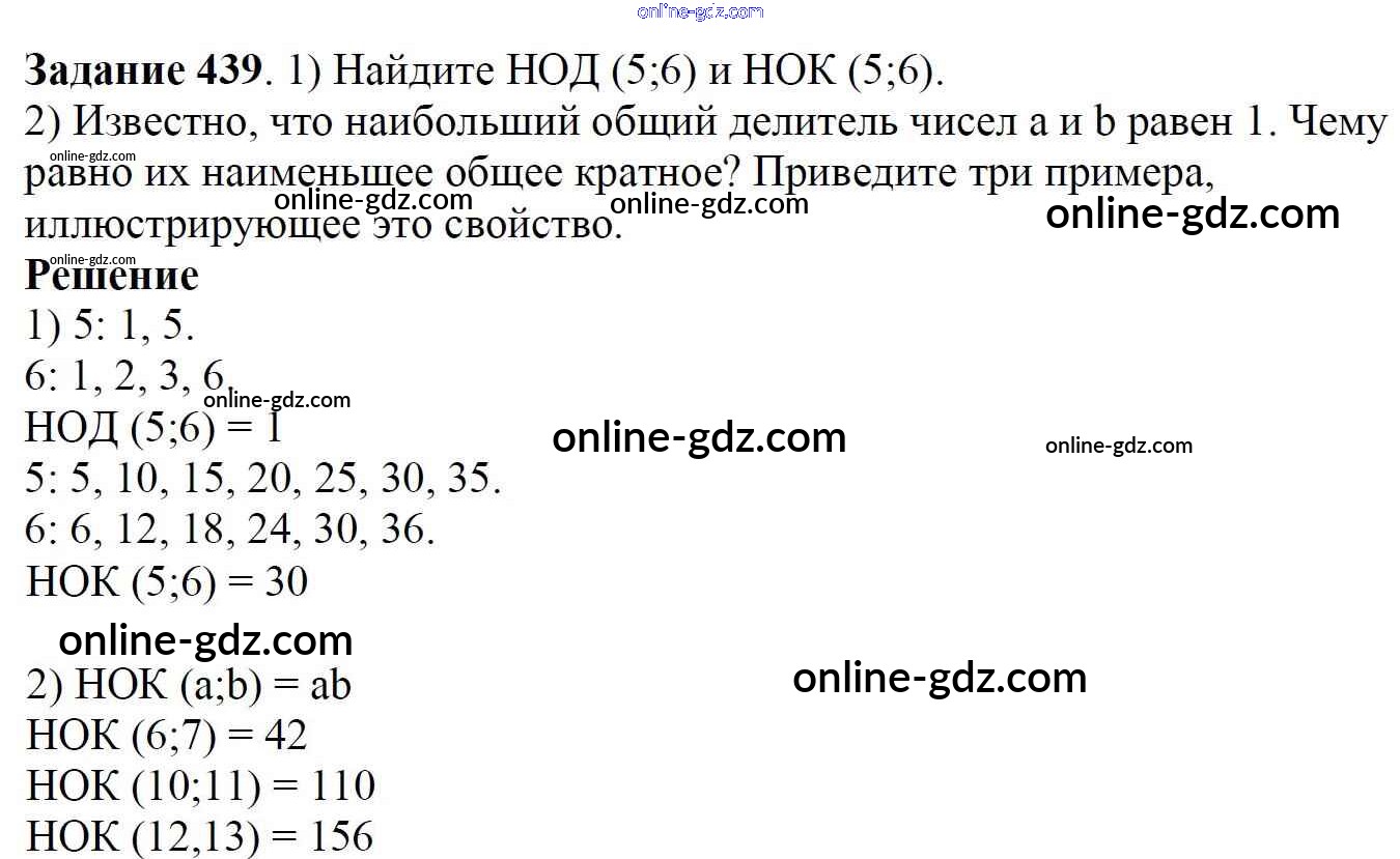 Готовые домашние задания по Математике за 5 класс Учебник Дорофеев, Шарыгин 2015 - 6.1. Делители и кратные Глава 6. Делимость чисел 439