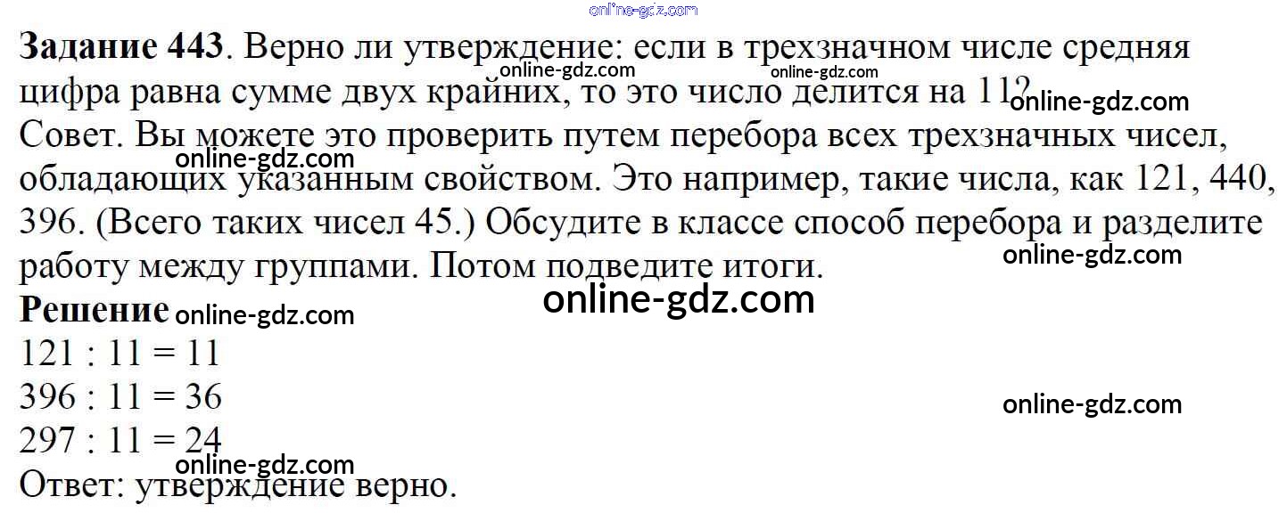 Готовые домашние задания по Математике за 5 класс Учебник Дорофеев, Шарыгин 2015 - 6.1. Делители и кратные Глава 6. Делимость чисел 443