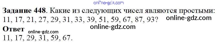 Готовые домашние задания по Математике за 5 класс Учебник Дорофеев, Шарыгин 2015 - 6.2. Простые и составные Глава 6. Делимость чисел 448