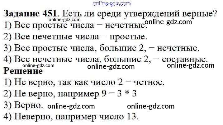 Готовые домашние задания по Математике за 5 класс Учебник Дорофеев, Шарыгин 2015 - 6.2. Простые и составные Глава 6. Делимость чисел 451