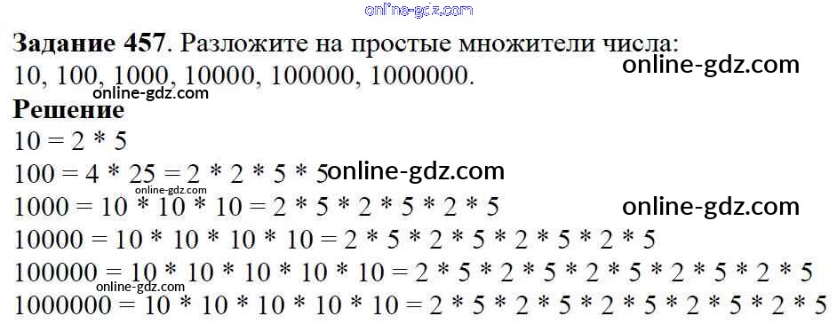 Готовые домашние задания по Математике за 5 класс Учебник Дорофеев, Шарыгин 2015 - 6.2. Простые и составные Глава 6. Делимость чисел 457